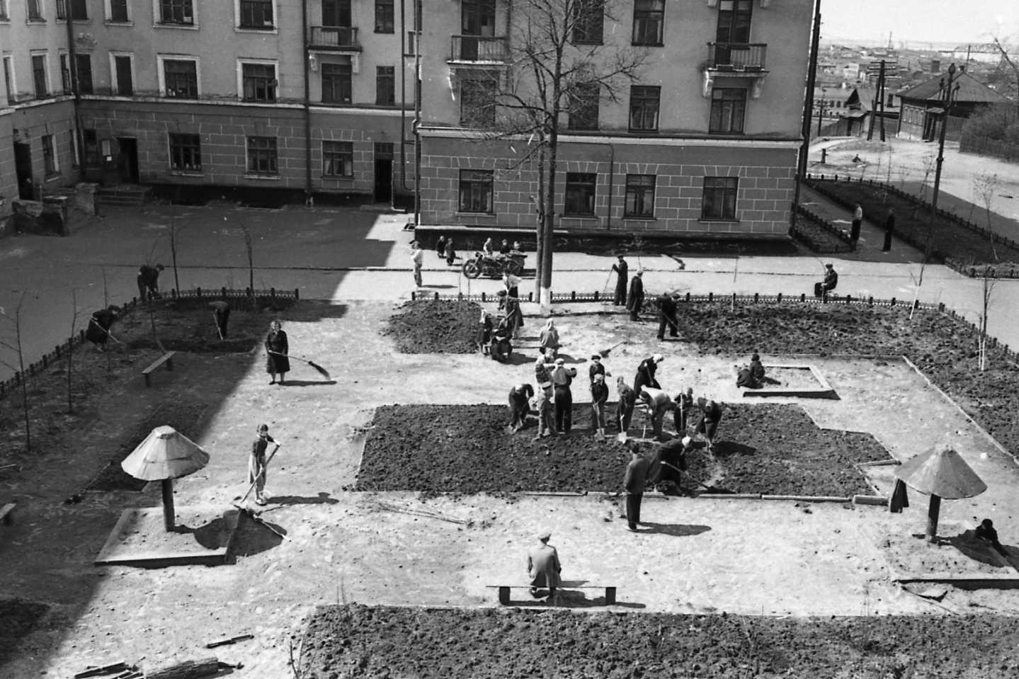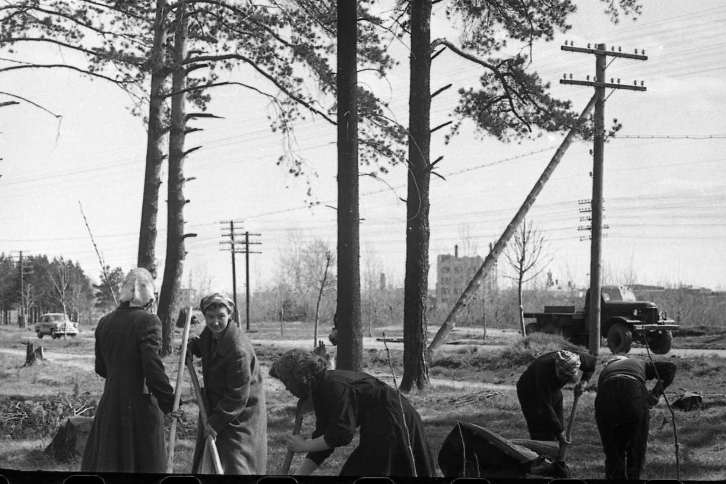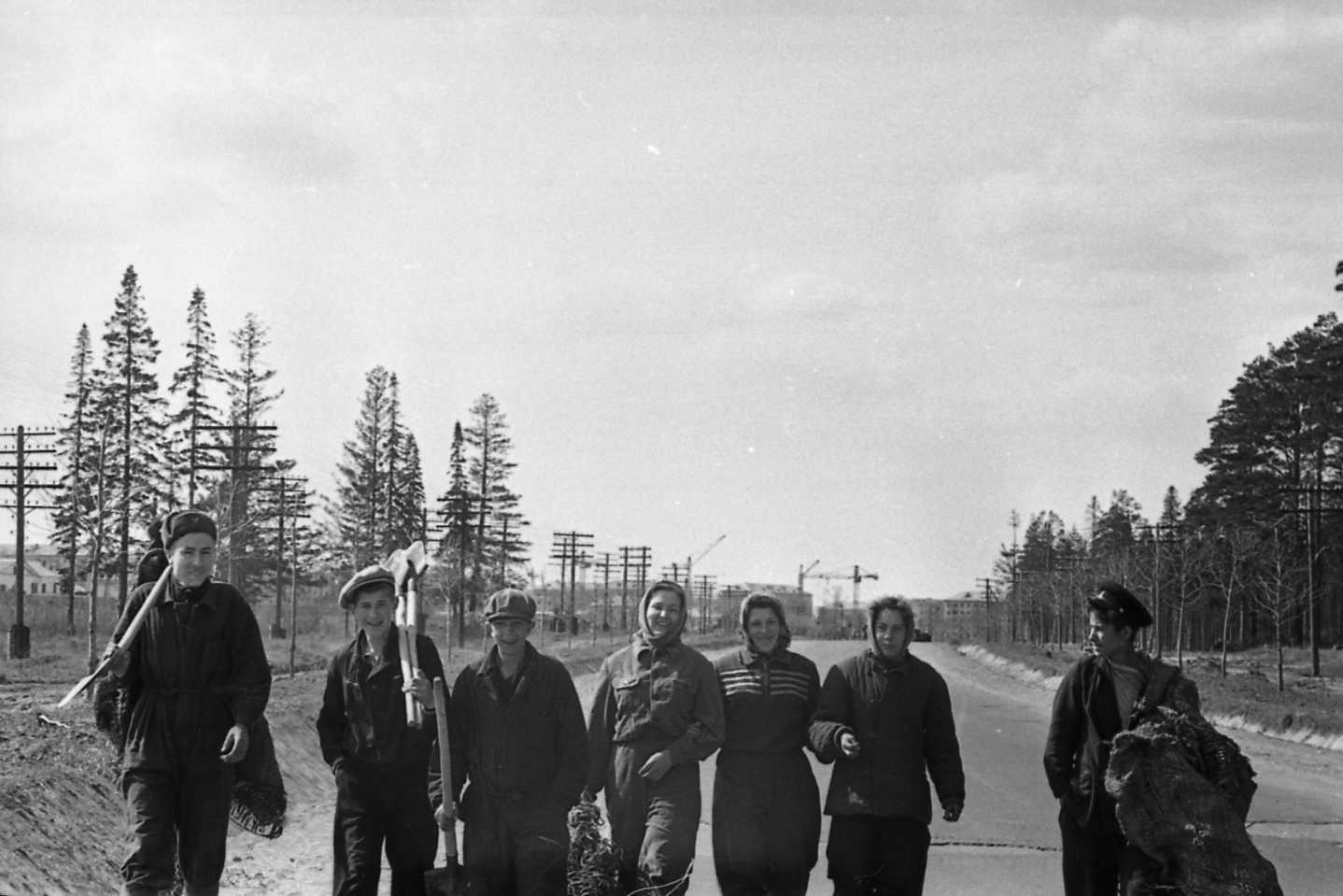 2-fc.com ::Пермь»A.НОВОСТИ,СОБЫТИЯ,ИСТОРИЯ ПЕРМИ,ПЕРМСКИЙ КРАЙ»1951-1960 ПЕРМЬ.»1958.Коммунистический субботтник ,студенты биофака ПГУ садят деревья в Черняевском лесу.Фото В.Суворов