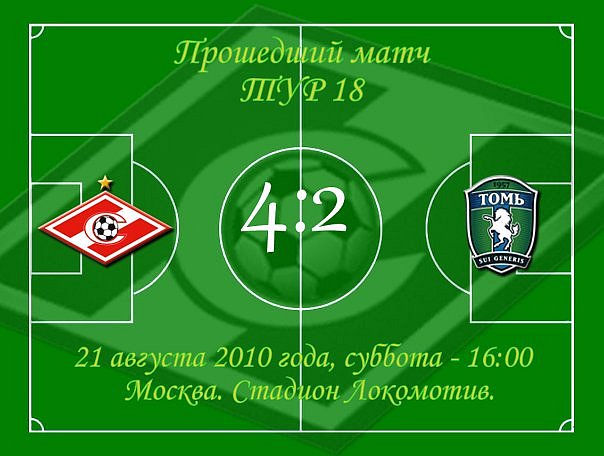 2-fc.com ::Москва»МОСКВА СПОРТИВНАЯ»ИГРОВЫЕ ВИДЫ СПОРТА МОСКВА»ФУТБОЛ МОСКВА»ФК Спартак Москва основан 1 января 1922 г.(Красная Пресня, Пищевики, Дукат ) С 1935 года Спартак»2001-2010 Спартак (Москва)»2010.18-й тур РПЛ Спартак - Томь 21.08. суббота г.Москва