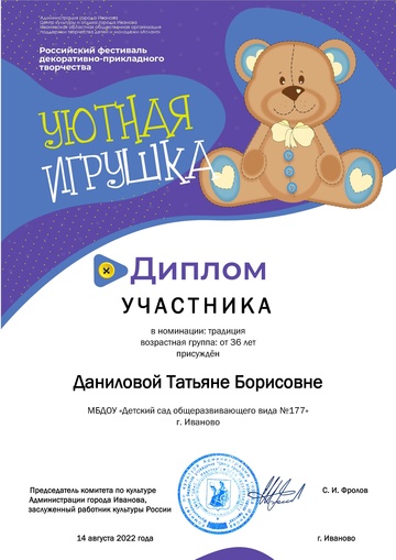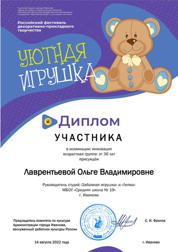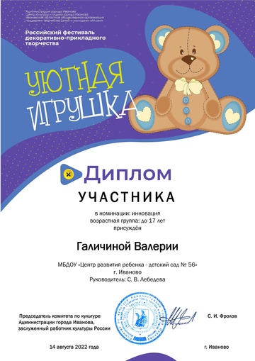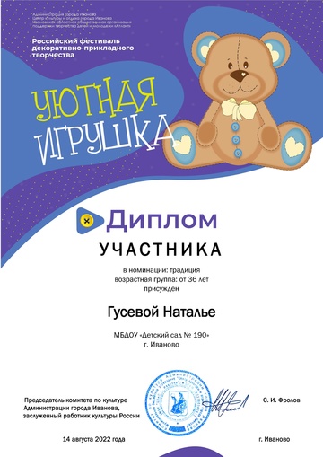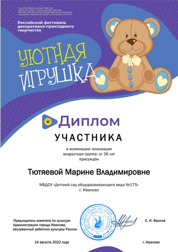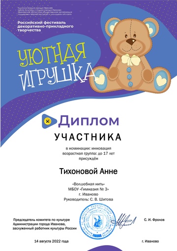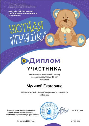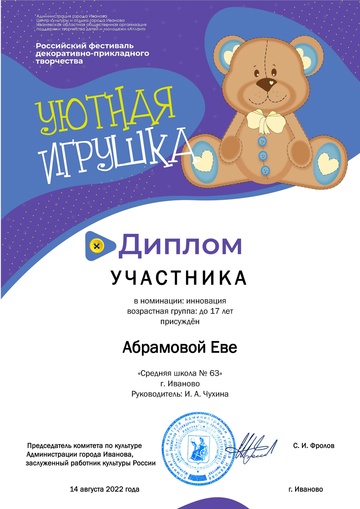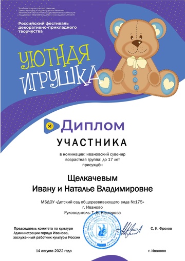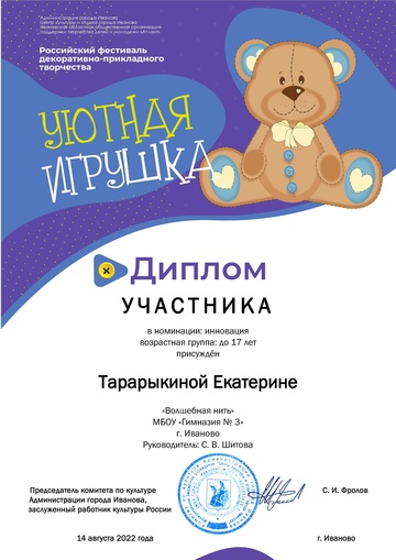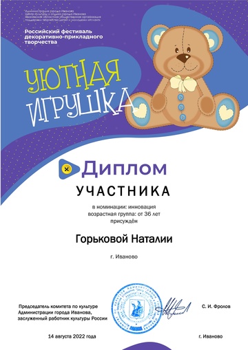 2-fc.com ::Иваново»Иваново КОНЦЕРТЫ, МУЗЫКА,ФЕСТИВАЛИ»Центр культуры и отдыха г. Иванова»2022 Центр культуры и отдыха г. Иванова»Дипломы "Уютная игрушка 2022"